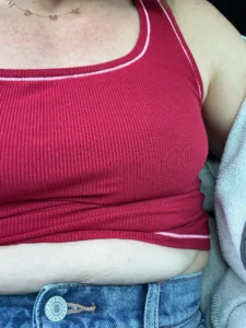 I will still have stretch marks and scars–reminders of my journey. But I do feel like I’m entering a very different phase of life. My kids are older (17, 12, 12, and 3). I can’t explain it entirely, but being in my 40s has really made me feel more like I want to come back to “me.” And part of coming back to me means that I want to feel entirely good in this skin (or lack thereof).